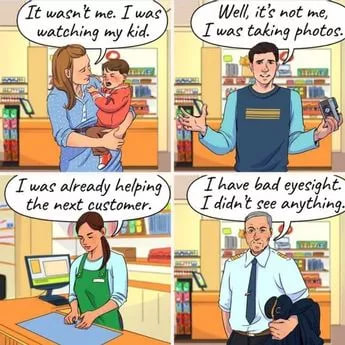 Alt, hvad du skal gøre, er at se på billedet nedenfor og identificere, hvem af personerne i butikken der har stjålet en pung. Tre af personerne på billedet taler sandt, men en af dem lyver.