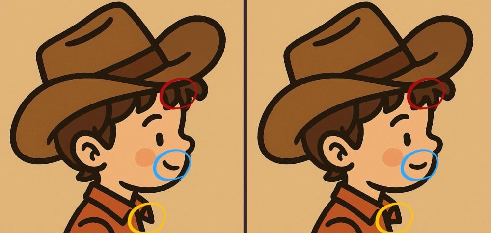 Så er du klar til den næste udfordring? Se nærmere på to billeder af en dreng med cowboyhat. De ser måske ens ud ved første øjekast, men der er 3 små forskelle. Tror du, at du kan finde dem alle på 51 sekunder? Prøv det, og test din synsstyrke!