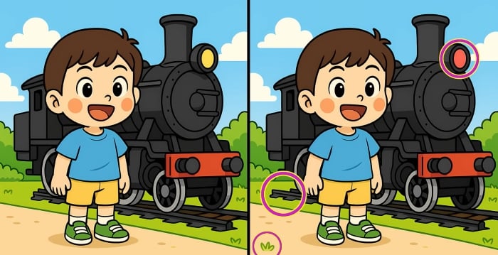 Så er du klar til den næste udfordring? Se nøje på de to billeder af drengen, der står ved siden af damptoget. De ser måske identiske ud ved første øjekast, men der er 3 små forskelle. Tror du, at du kan finde dem alle på 29 sekunder? Prøv det, og test din synsstyrke!