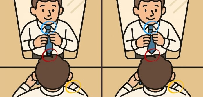 Så er du klar til den næste udfordring? Se nærmere på to billeder af en mand, der binder et slips. De ser måske identiske ud ved første øjekast, men der er 3 små forskelle. Tror du, at du kan finde dem alle på 45 sekunder? Prøv det, og test din synsstyrke!