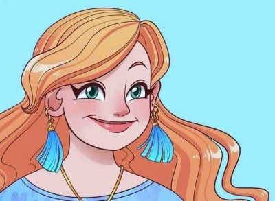 Fejlen i tegningen er, at pigens venstre øre er vendt på hovedet.
