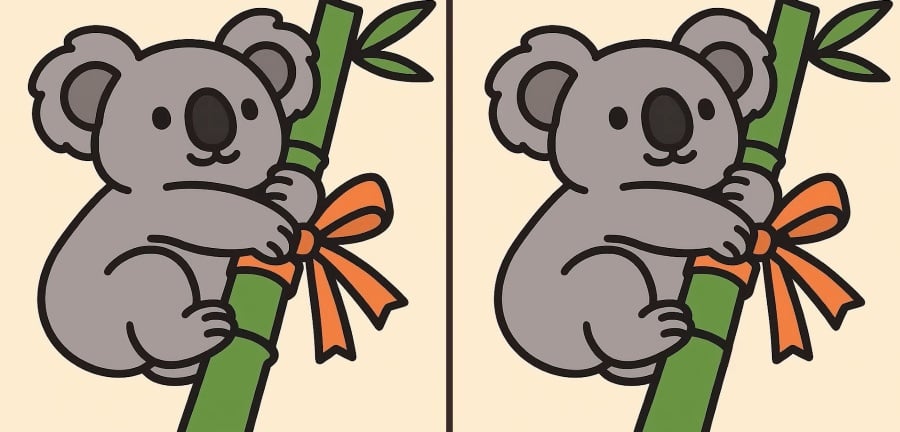 Så er du klar til den næste udfordring? Se nøje på de to billeder af en koala, der krammer bambus. De ser måske ens ud ved første øjekast, men der er 3 små forskelle. Tror du, at du kan finde dem alle på 33 sekunder? Prøv det, og test din synsstyrke!