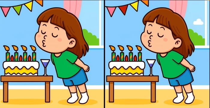 Så er du klar til den næste udfordring? Se nøje på de to billeder af pigen, der puster lysene ud på kagen. De ser måske ens ud ved første øjekast, men der er 3 små forskelle. Tror du, at du kan finde dem alle på 31 sekunder? Prøv det, og test din synsstyrke!