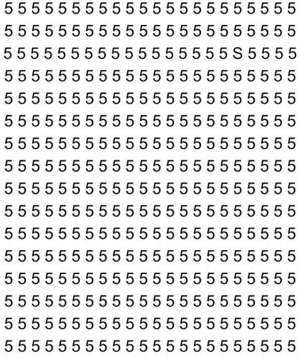 I den følgende optiske illusion skal du finde bogstavet S blandt et stort antal cifre 5, skriver jagranjosh.